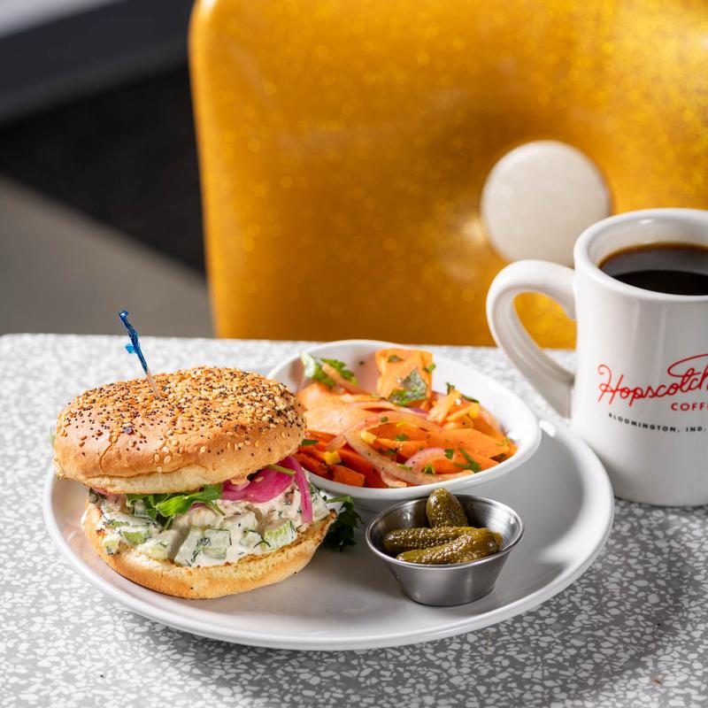 My favorite coffee shop in bloomington! baristas there are always super friendly. they have great, unique options for food & beverage that can appeal to people with all sorts of allergies or diet restrictions. i've tried most coffee shops in bloomington and hopscotch by far is the best quality. their patio area is also super nice to sit and do work!